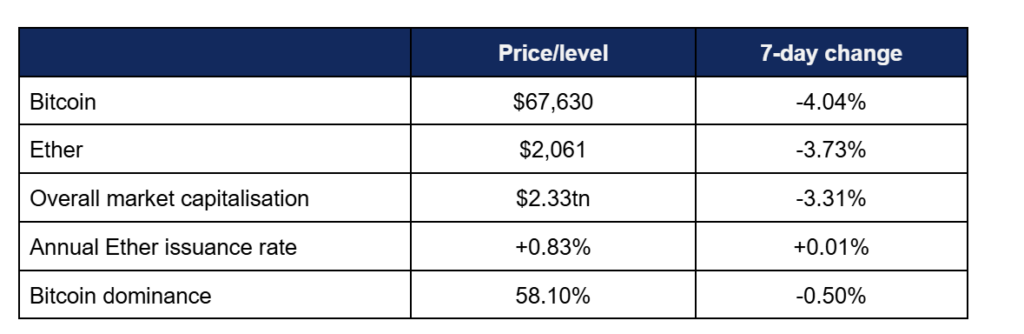 Digital assets pulled back further from recent gains, as escalating global conflicts lessened investor risk tolerance. ETFs moved into outflow mode for the first time in five weeks, but crypto adoption continued despite market headwinds; Franklin Templeton moved to tokenise ETFs, Fannie Mae accepted a crypto-backed mortgage product, NYSE parent company Intercontinental Exchange increased its exposure to the industry, and much more.