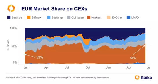 - This follows a previous withdrawal of support for GBP bank transfers by the same company in March, and caps a steady decline in market share for Euro-denominated trade by Binance; rivals Kraken now controls more than half of EUR trading pair volume